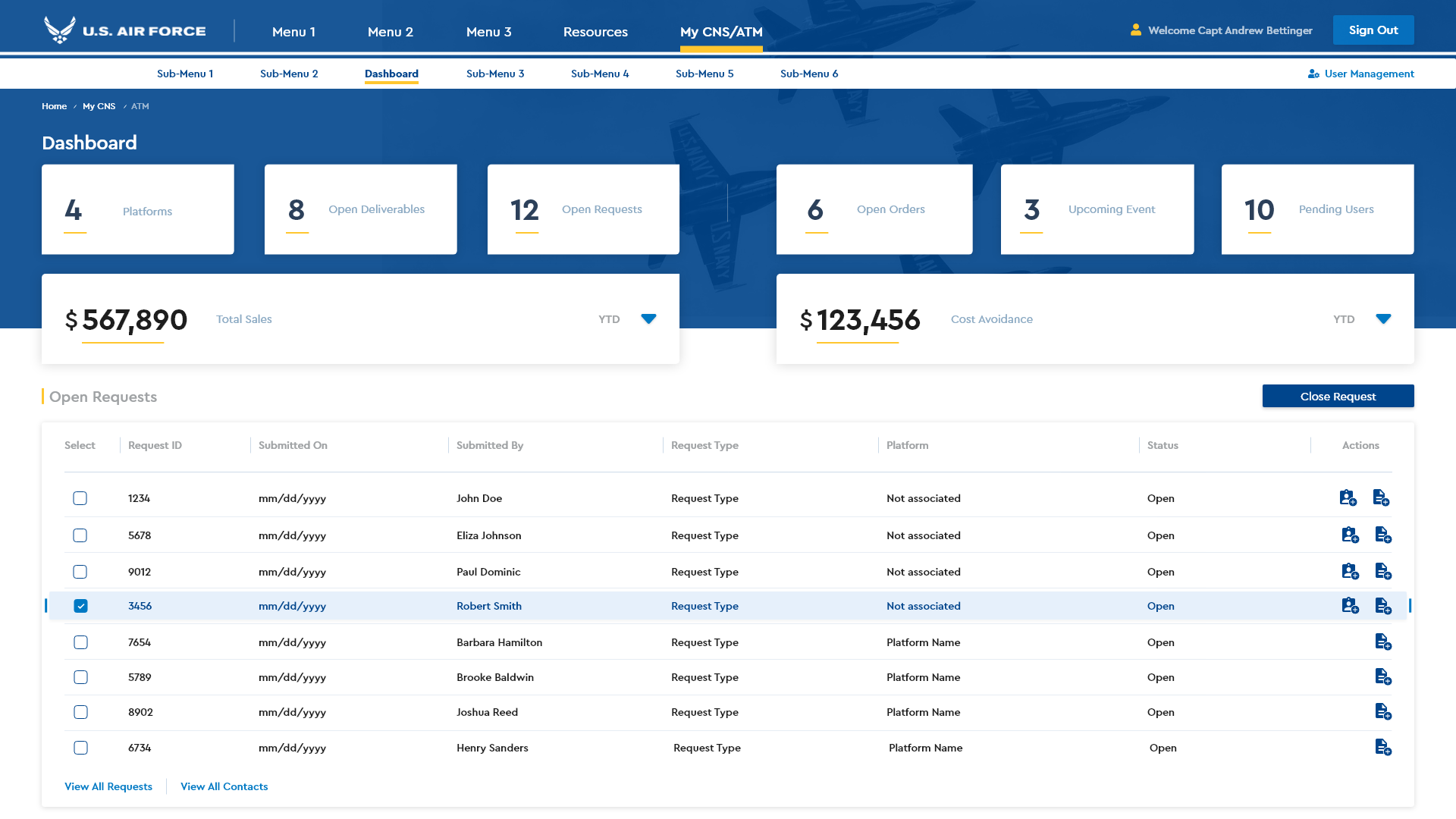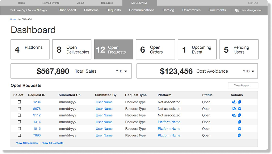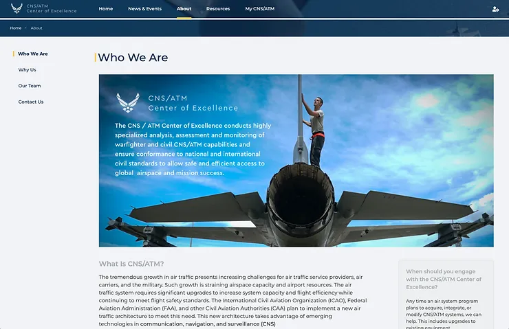 A modernized Communications, Navigation, Surveillance & Air Traffic Management portal, built in partnership with BESPIN and Hanscom Air Force Base, Massachusetts.